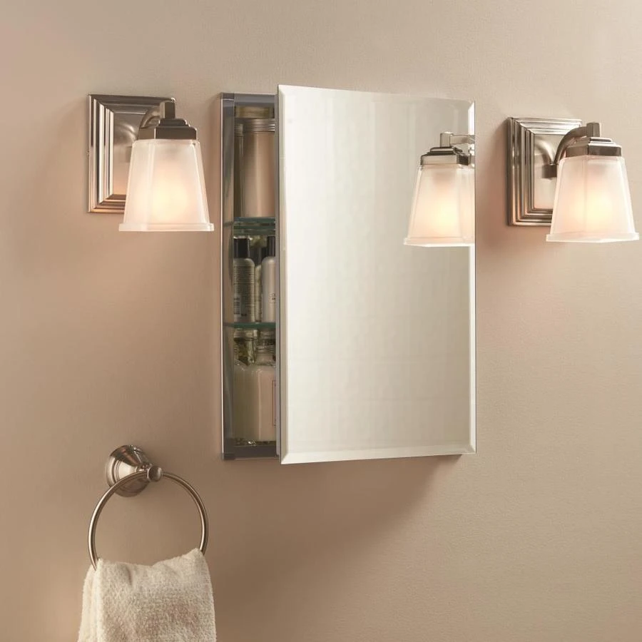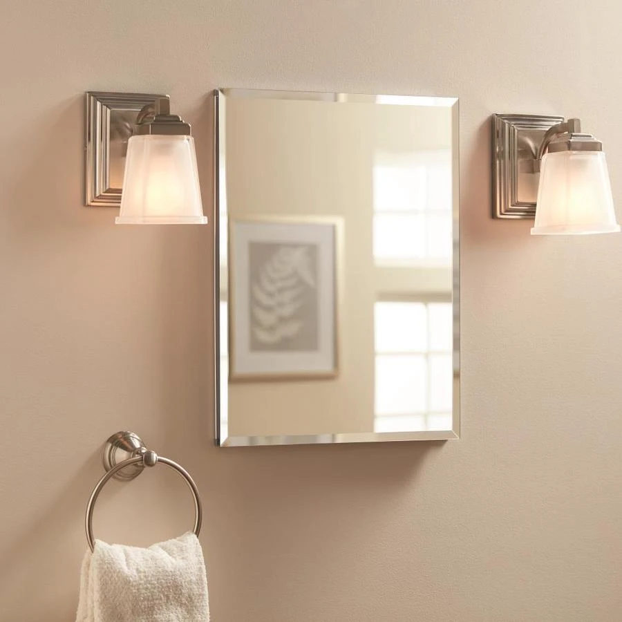 The 16 In. x 20 In. recessed or surface mount mirror medicine cabinet in frameless mirror with beveled edges design is a simple and stylish way to give your bathroom a warm and elegant look