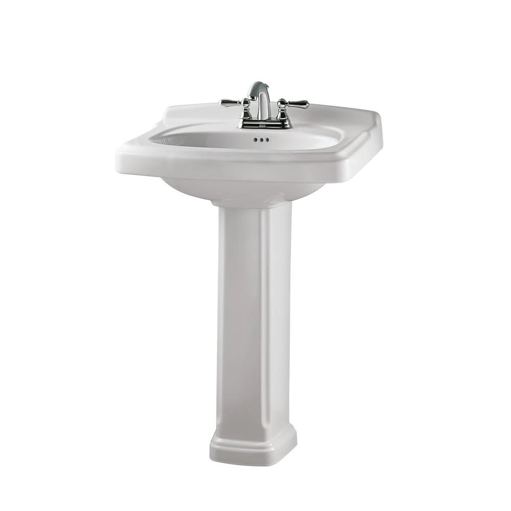 Turn on the turn-of-the-century charm. This pedestal sink from our Portsmouth Collection features exquisite details that make it ideal for a traditional bathroom. Plus, its ergonomic Right Height design helps prevent back strain. Made from high-gloss, stain-resistant vitreous china. Available with 4 in. or 8 in. center faucet holes.