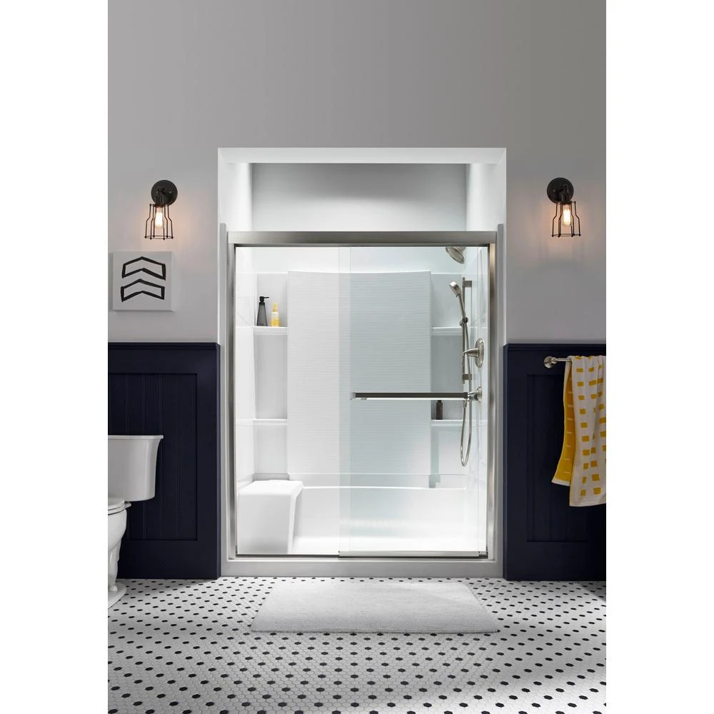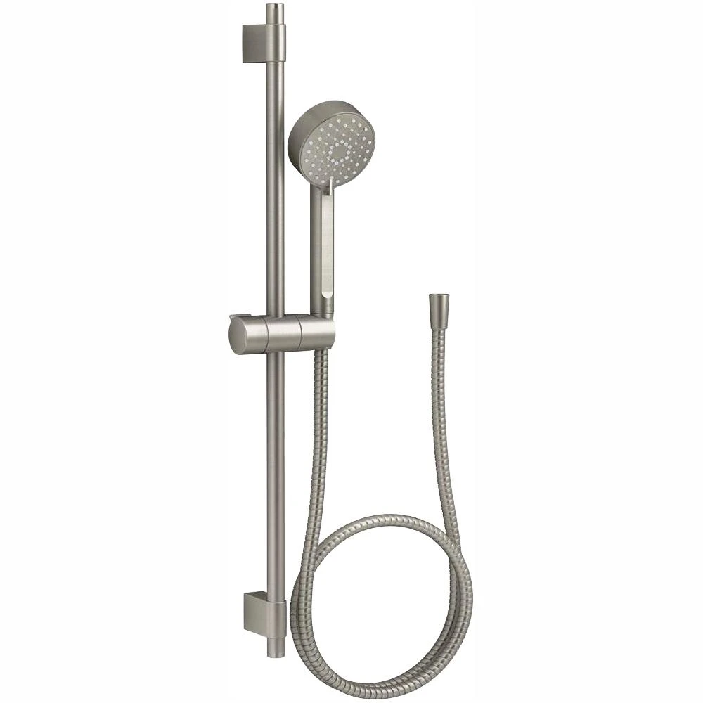 This all-in-one kit includes the Awaken G90 multifunction handshower, a 24 in. slide bar and a 60 in. ribbon hose. Advanced spray performance delivers three distinct sprays-wide coverage, intense drenching, or targeted-with a smooth rotation of a thumb tab. Ergonomic design makes for superior comfort and ease of use, with ideal balance and weight in the hand. The artfully sculpted spray face reveals simple, architectural forms that complement contemporary and minimalist baths.
