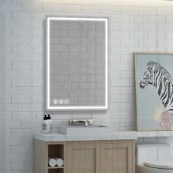 29.00 In. W X 36.00 In. H Framed Rectangular Beveled Edge Bathroom Vanity Mirror In Harbor Blue