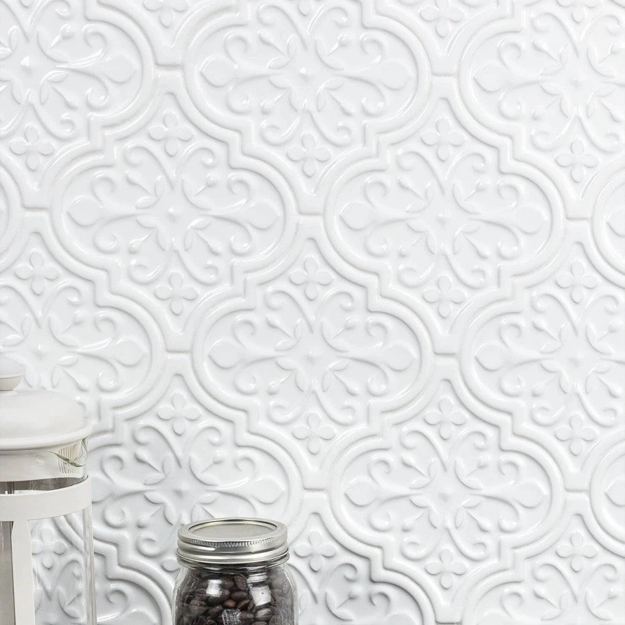 Bond Tile Roma Florid White 6.25 in. x 7.25 in. Ceramic Arabesque Wall Tile (30 pieces 4.84 Sq. Ft. / Box)