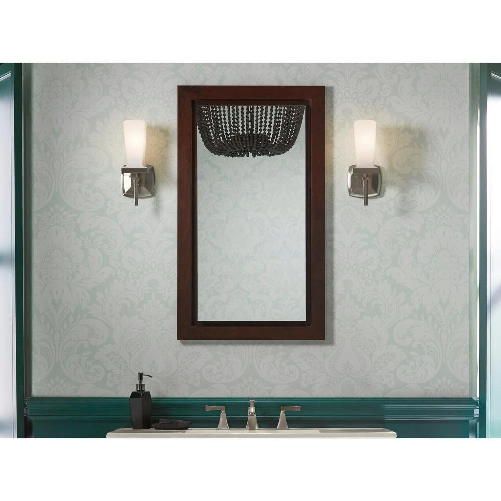 This 15 in. frameless medicine cabinet helps you put your best face forward. The mirror on the front door features a Flat Edge for enhanced style. Inside, adjustable glass shelves easily accommodate your toiletries.