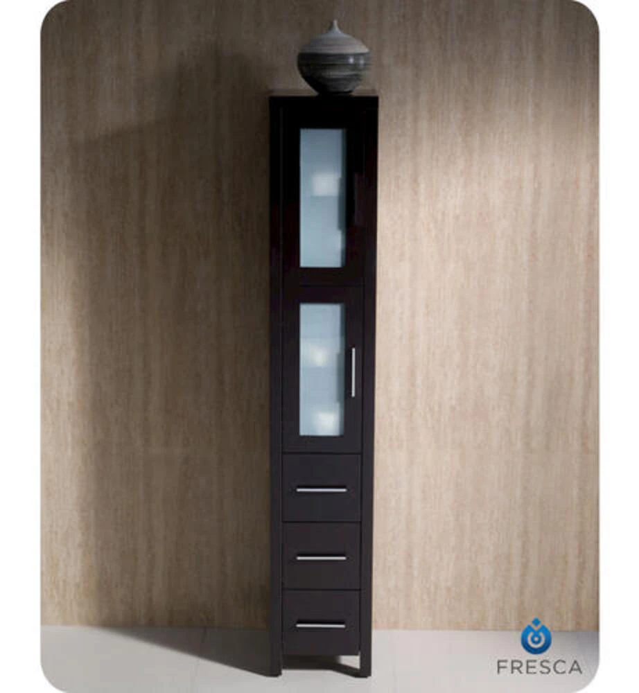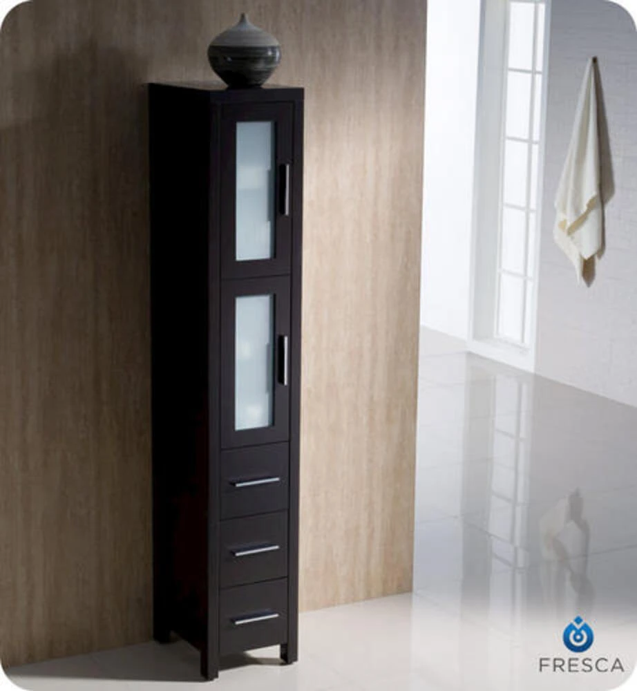 The Fresca Torino Tall Bathroom Linen Cabinet is not only a perfect addition to any Fresca Torino vanity ensemble, but it also works very well as a stand alone unit. The cabinet is made from a high quality veneer with frosted glass on the 2 doors.