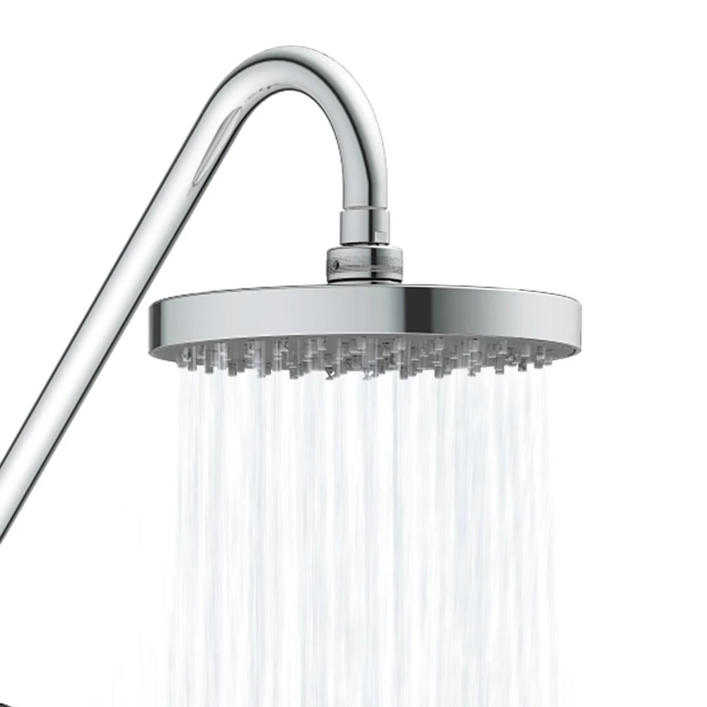 - 8 in. Rain showerhead with soft tips to clear mineral buildup for long-lasting performance