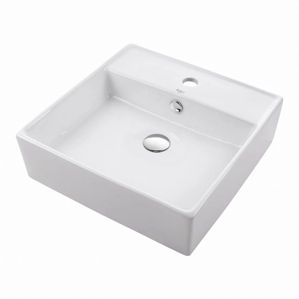 Set the tone for your bathroom decor with the versatile style of white ceramic. KRAUS offers a fresh take on this classic material with sinks that suit any style, from the traditional to the modern bathroom. This sleek vessel sink has a smooth, non-porous surface with a baked-on glaze for added durability and a high-gloss finish. Simply wipe the sink surface with a damp cloth to keep it looking beautiful with minimal maintenance. Above-counter mounting frees up space on the bathroom counter and lets you bring your best bathroom design ideas to life. Pair this KRAUS sink with any vessel sink faucet for a stylish look, and experience KRAUS Quality.