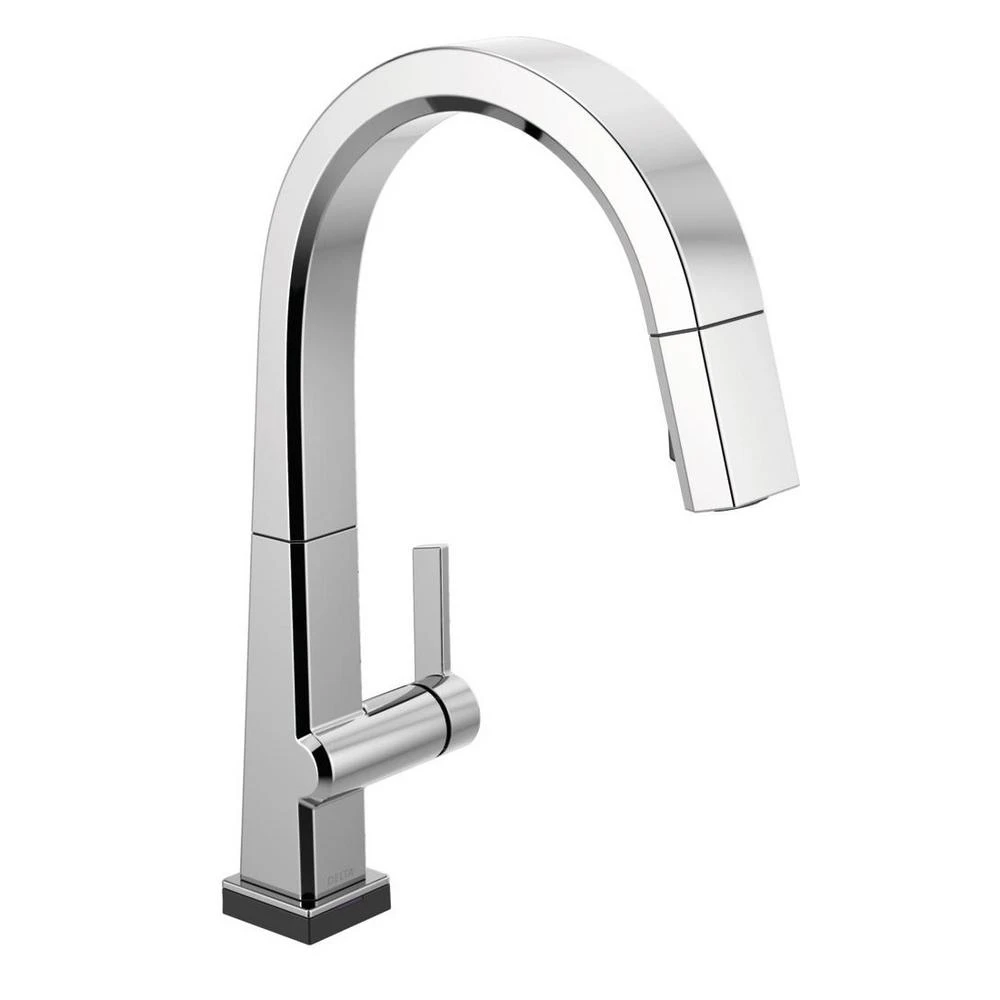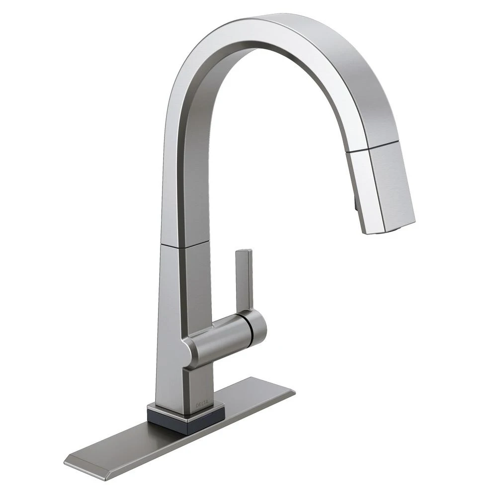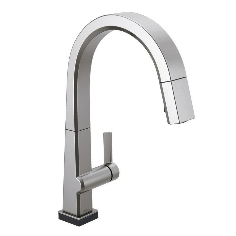 The confident slant of the Pivotal Collection makes it a striking addition to your kitchens contemporary geometry for a look that makes a statement. Touch it on. Touch it off. Whether you have two full hands or 10 messy fingers, Delta Touch2O Technology helps keep your faucet clean, even when your hands aren’t. A simple touch anywhere on the spout or handle with your wrist or forearm activates the flow of water at the temperature where your handle is set. The Delta TempSense LED light changes color to alert you to the waters temperature and eliminate any possible surprises or discomfort. Delta MagnaTite Docking uses a powerful integrated magnet to pull your faucet spray wand precisely into place and hold it there so it stays docked when not in use. Delta faucets with DIAMOND Seal Technology perform like new for life with a patented design which reduces leak points, is less hassle to install and lasts twice as long as the industry standard. You can install with confidence, knowing that Delta faucets are backed by our Lifetime limited warranty. Electronic parts are backed by our 5-year electronic parts warranty. Industry standard is based on ASME A112.18.1 of 500,000 cycles.