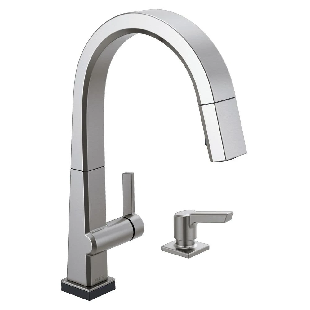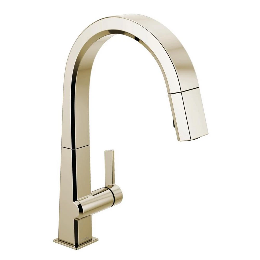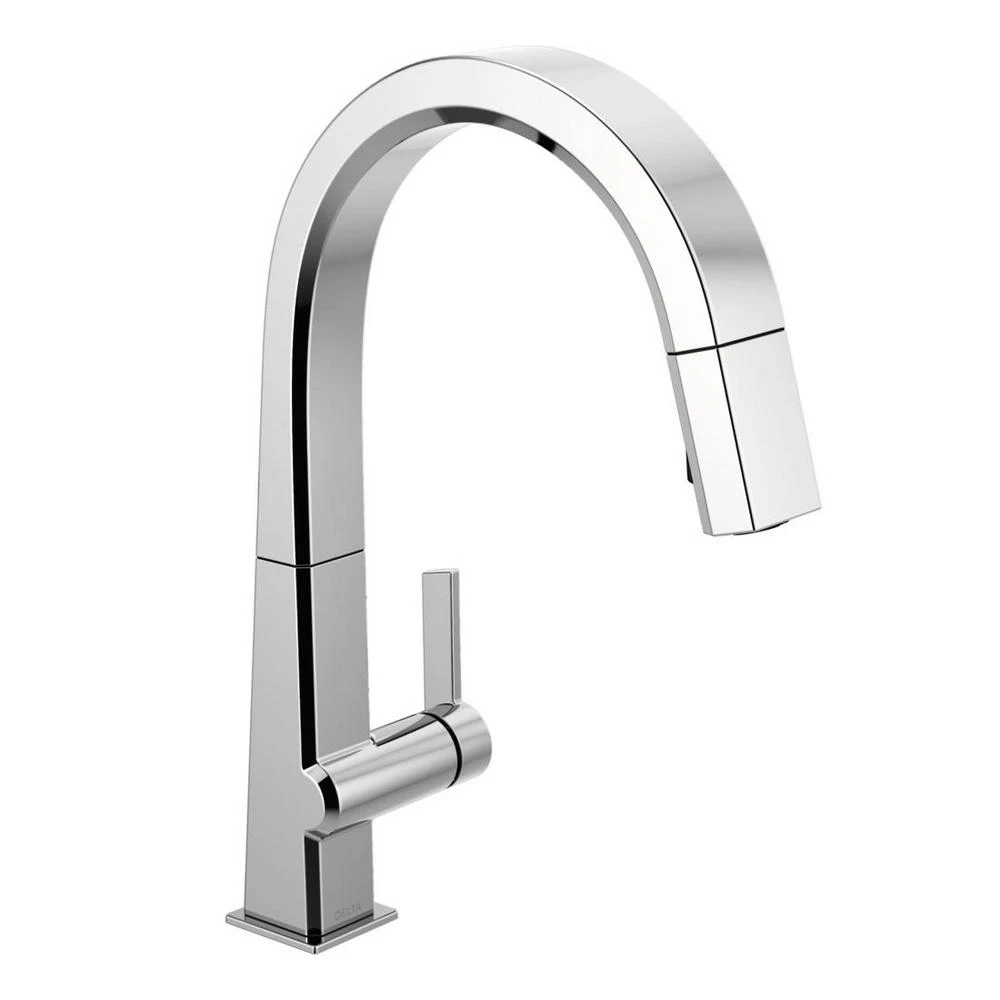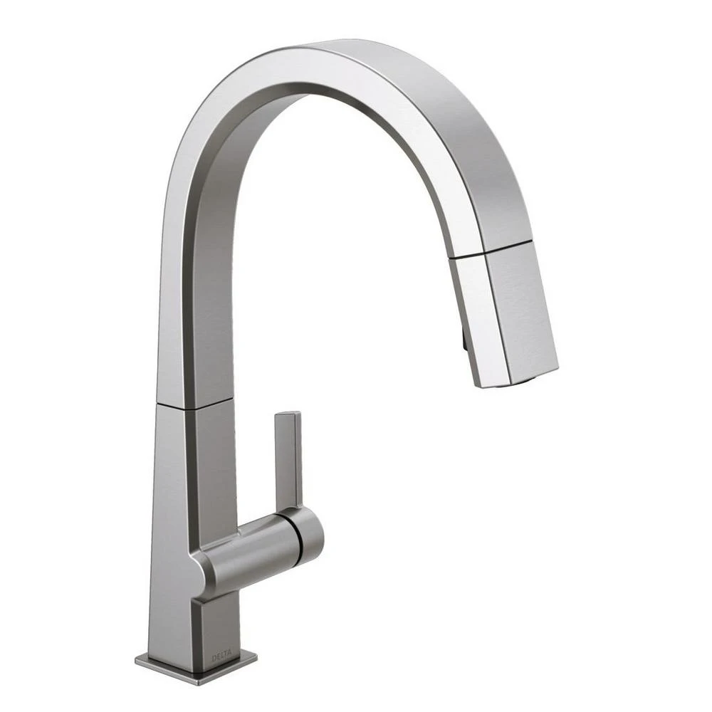The confident slant of the Pivotal Collection makes it a striking addition to your kitchens contemporary geometry for a look that makes a statement. Touch it on. Touch it off. Whether you have two full hands or 10 messy fingers, Delta Touch2O Technology helps keep your faucet clean, even when your hands aren’t. A simple touch anywhere on the spout or handle with your wrist or forearm activates the flow of water at the temperature where your handle is set. The Delta TempSense LED light changes color to alert you to the waters temperature and eliminate any possible surprises or discomfort. Delta MagnaTite Docking uses a powerful integrated magnet to pull your faucet spray wand precisely into place and hold it there so it stays docked when not in use. Delta faucets with DIAMOND Seal Technology perform like new for life with a patented design which reduces leak points, is less hassle to install and lasts twice as long as the industry standard. You can install with confidence, knowing that Delta faucets are backed by our Lifetime limited warranty. Electronic parts are backed by our 5-year electronic parts warranty. Industry standard is based on ASME A112.18.1 of 500,000 cycles.