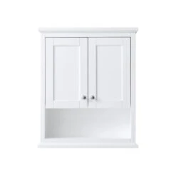 Wyndham Collection Sheffield 24″White Linen Tower With Shelved Cabinet Storage And 4 Drawers