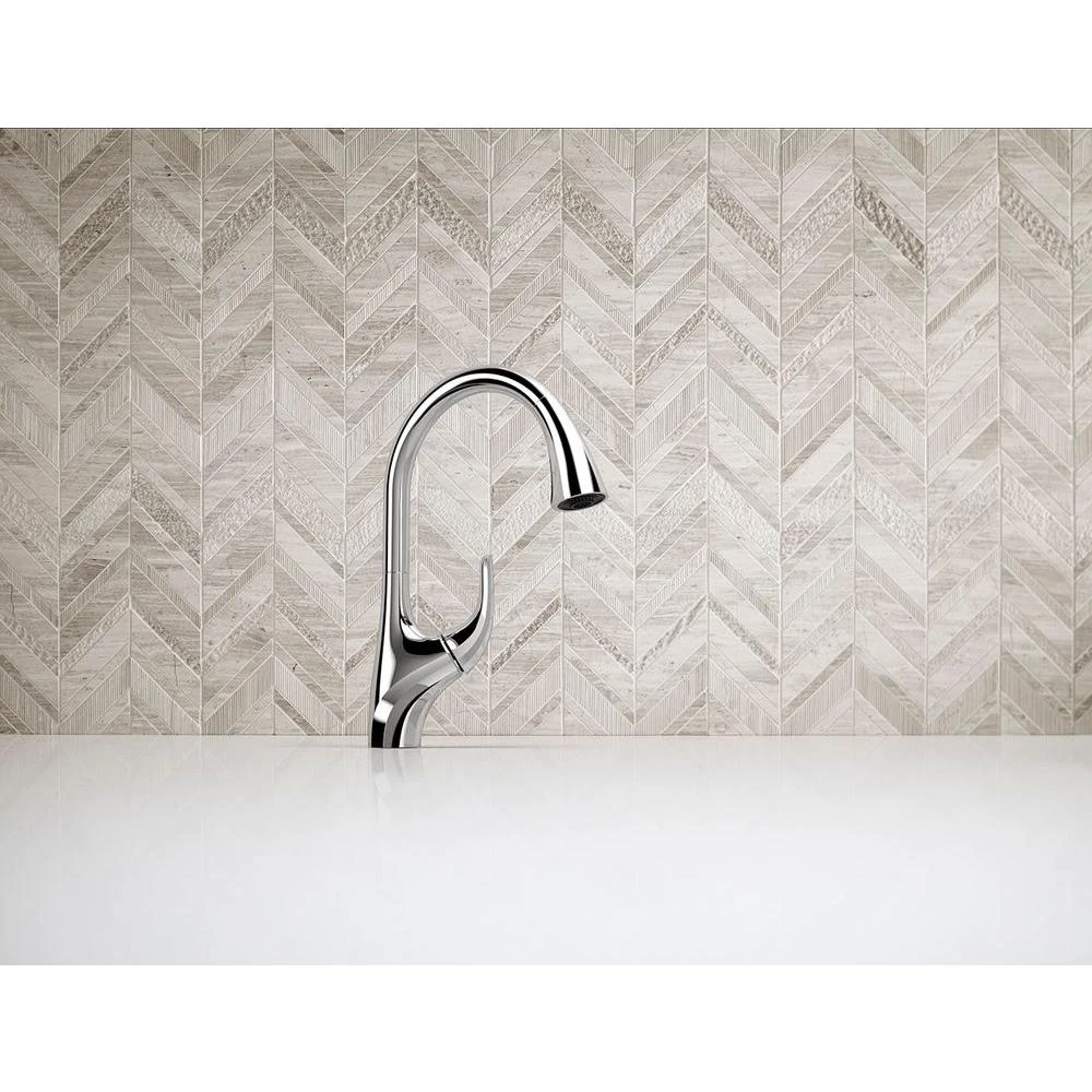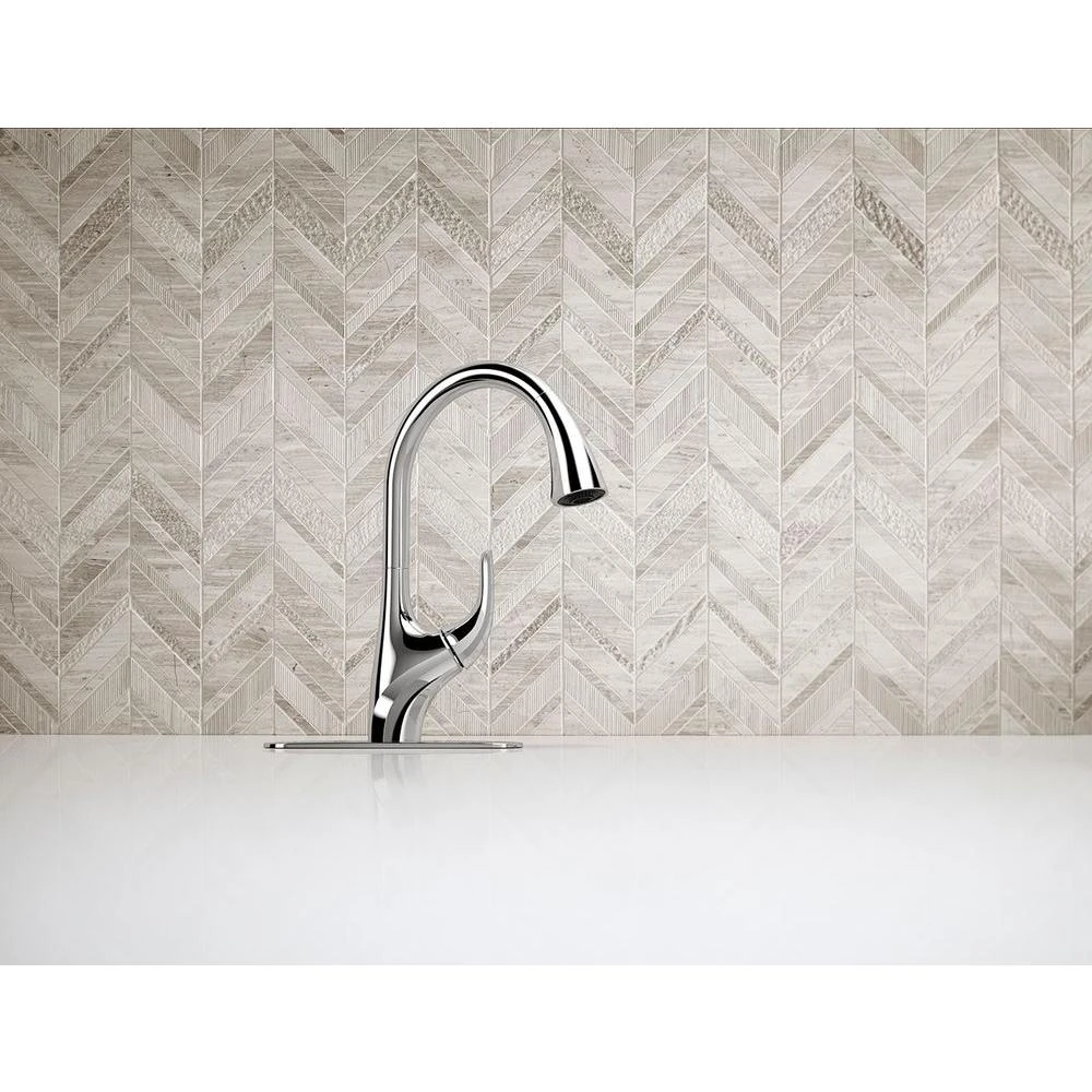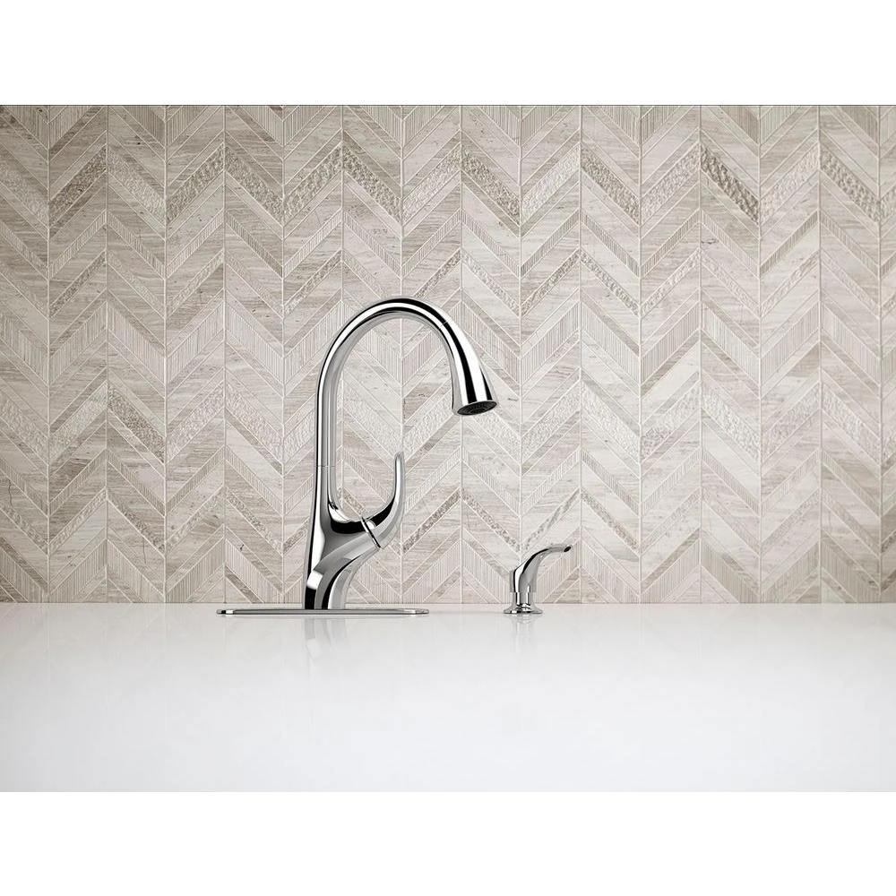 With subtle lines emanating from its handle, the Trielle pull out kitchen faucet brings a touch of glamour to contemporary design. DockNetik technology secures spray head in place through our signature magnetic docking system. Two-function spray head features stream and Sweep, a wide forceful spray that makes cleanup easier, to facilitate all the various tasks of the kitchen space.