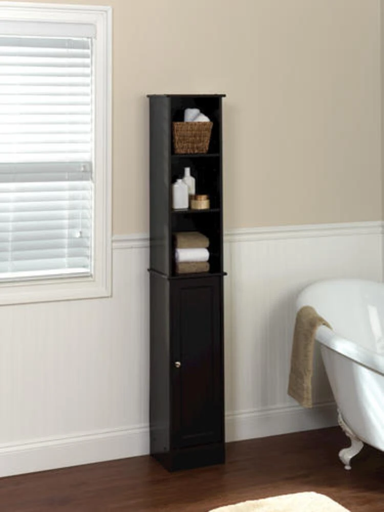 Clean lines and sleek styling are the heroes in this bath storage Linen Cabinet. Large cabinet design offers plenty of storage space for bath essentials and offers both concealed and easily assessable storage.