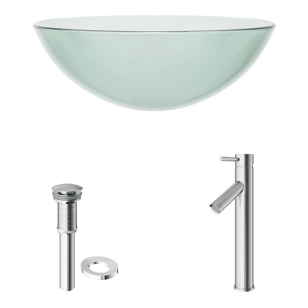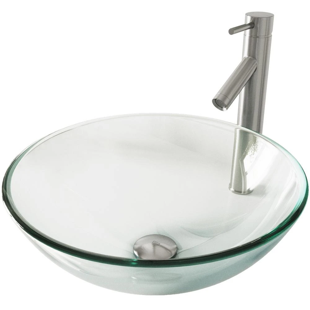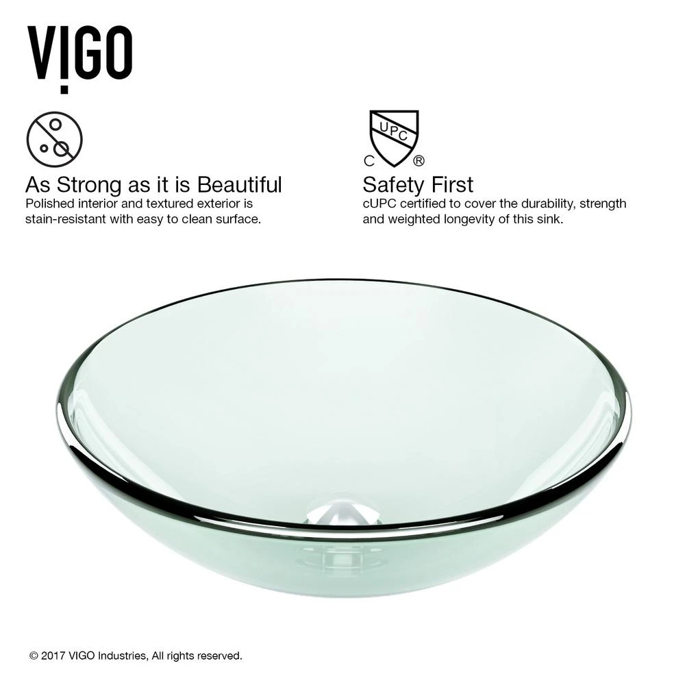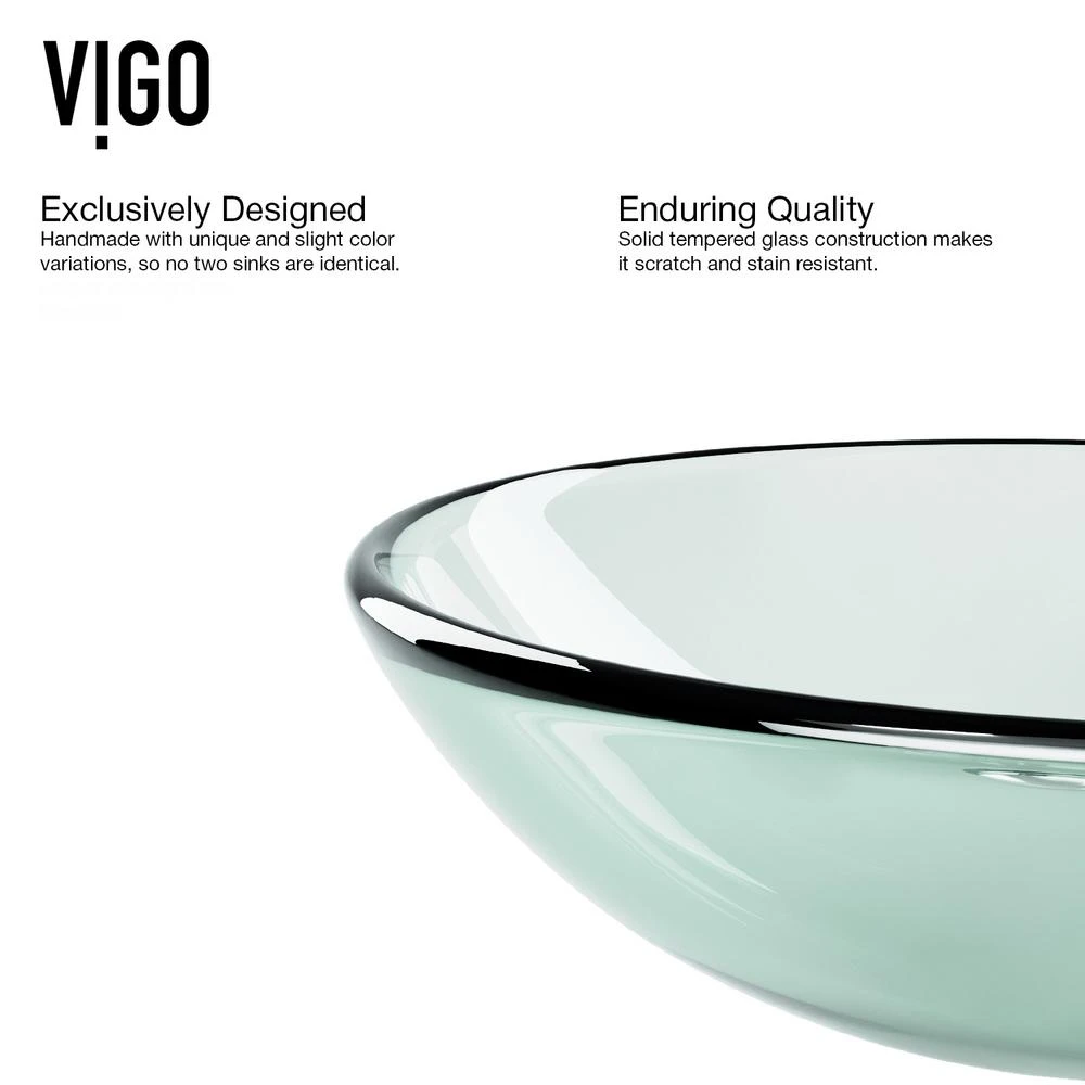 Clearly see your way to a bounty of possibilities with the VIGO Crystalline Glass Vessel Sink and Dior Vessel Faucet Set. The translucent sink suggests a subtle blue hue to reflect that of natural water. Made of solid tempered glass, the sink is both durable and resilient. The sink’s brilliance is further enhanced when paired with the sleek and stylish Dior Vessel Faucet. A matching pop-up drain that installs directly inside the sink completes this simply beautiful set.